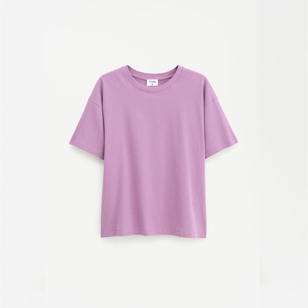 Das locker geschnittene T-Shirt ist aus mittelschwerem, Bio-Baumwolljersey in Morgenblau gestrickt. Mit Ausschnitt in breitem Rippstrick, überschnittener Schulterpartie und Gesäßlänge. Kombiniere es mit einer lässigen Hose für einen mühelosen Look.