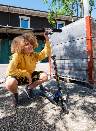 LED Räder vorne und hinten verleihen dem klassischen Micro Scooter das gewisse Extra. Die kompakte Grösse und das leichte Gewicht garantieren eine einfache Handhabung und müheloses Tragen. Geeignet für Kinder oder Teenager bis 100 Kg