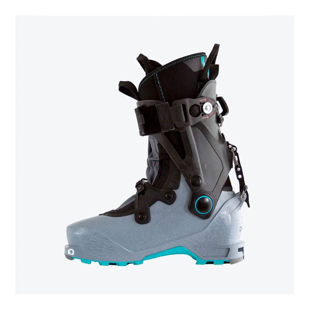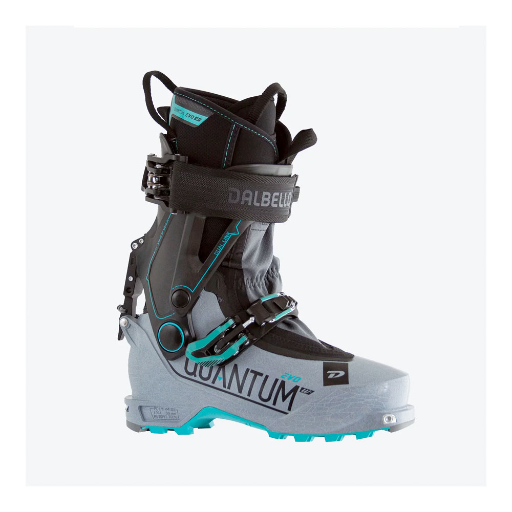 Der Leistungsvorsprung des Quantum EVO W mit 99 mm-Leiste beruht auf der innovativen, zweiteiligen Schalen- und Schaftkonstruktion mit anatomischer Passform. Sie kombiniert eine extrem feste, steife Außenschale inklusive durchgängiger Sohlenplatte mit höchster Bewegungsfreiheit im Anstieg. Carbon-verstärktes Polyamid erhöht die Steifigkeit der Konstruktion. Die optimierte Mittelöffnung mit dehnbarer Gamasche ermöglicht trotzdem ein leichtes Ein- und Aussteigen. Das geringe Gewicht und der zweiteilige EVO Dual Link-Schaft mit 65° Bewegungsspielraum erleichtern den Aufstieg. Am Berg wird der erhöhte Schaft mit Schienbeinpolster einfach mittels Hike & Ride-Schnalle und Velcro-Powerstrap verschlossen und sorgt so für überzeugenden Sitz und optimale Kraftübertragung. Das breite Klettband besitzt übrigens eine Memory-Funktion plus Quick Release und muss nur einmalig eingestellt werden. Dank extrem steifem Schalenmaterial werden alle Steuerimpulse verlustfrei auf den Ski übertragen – für bestmögliche Performance und Skikontrolle. Der sehr leichte, mehrlagige ID Touring-Innenschuh mit AUTOFIT-Polsterungen garantiert festen Fersenhalt, Wärme und überdurchschnittlichen Komfort. Dank MyFit-Technologie lässt sich der Quantum EVO W individuell an den Fuß anpassen. Eine profilierte Vibram-Sohle (Rocker) mit Härteabstufungen bietet mehr Trittsicherheit im Schnee und beim Klettern sowie spielfreie Kraftübertragung auf Bindung und Ski.