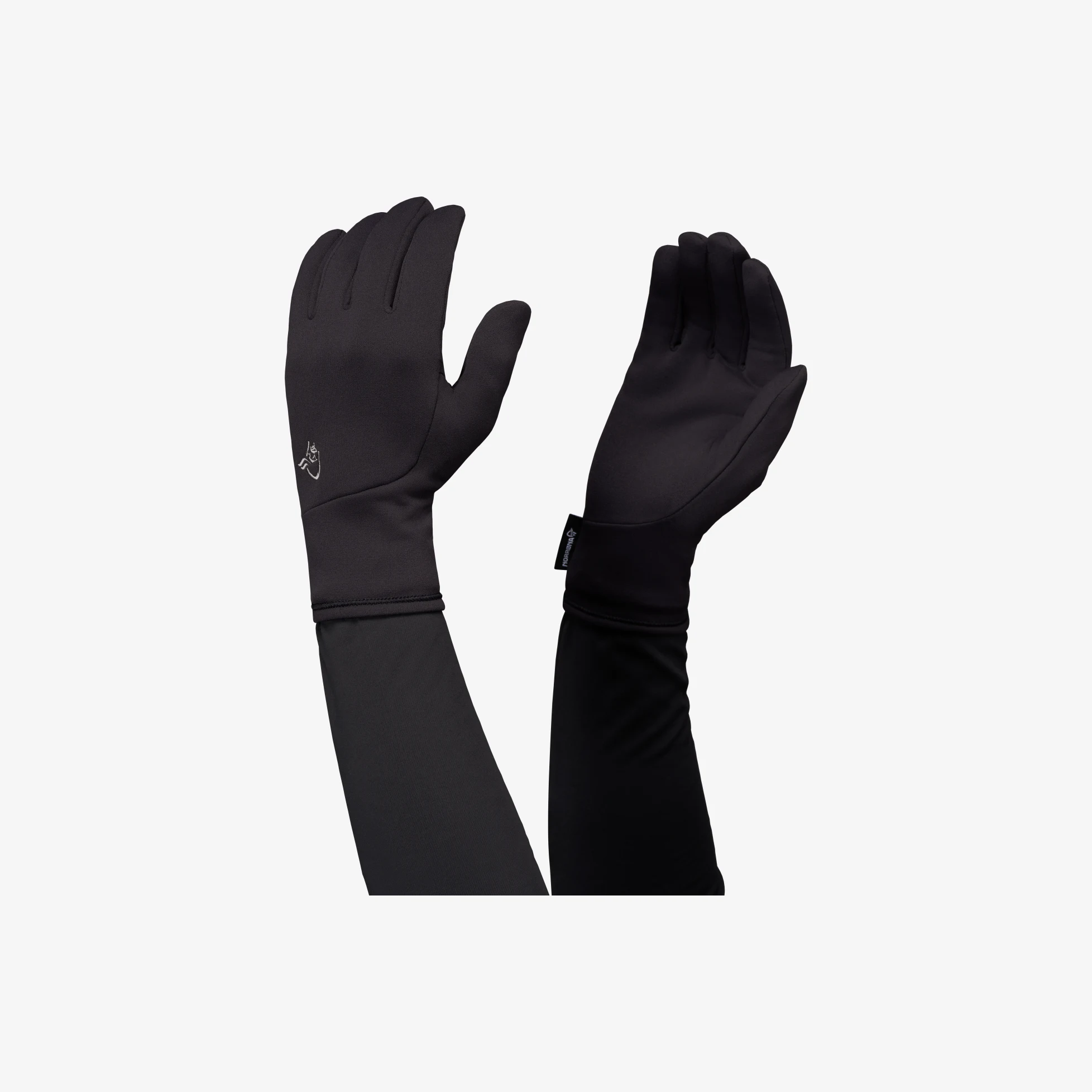 Wir verwenden ein Stretch-Fleece (95 % recyceltes Polyester, 5 % Elestan), weil es ein hervorragendes Wärme-Gewichts-Verhältnis, eine solide Strapazierfähigkeit und ein schnelles Trocknungs- und Dehnungsverhalten bietet, das für den Zweck dieser Handschuhe perfekt ist.