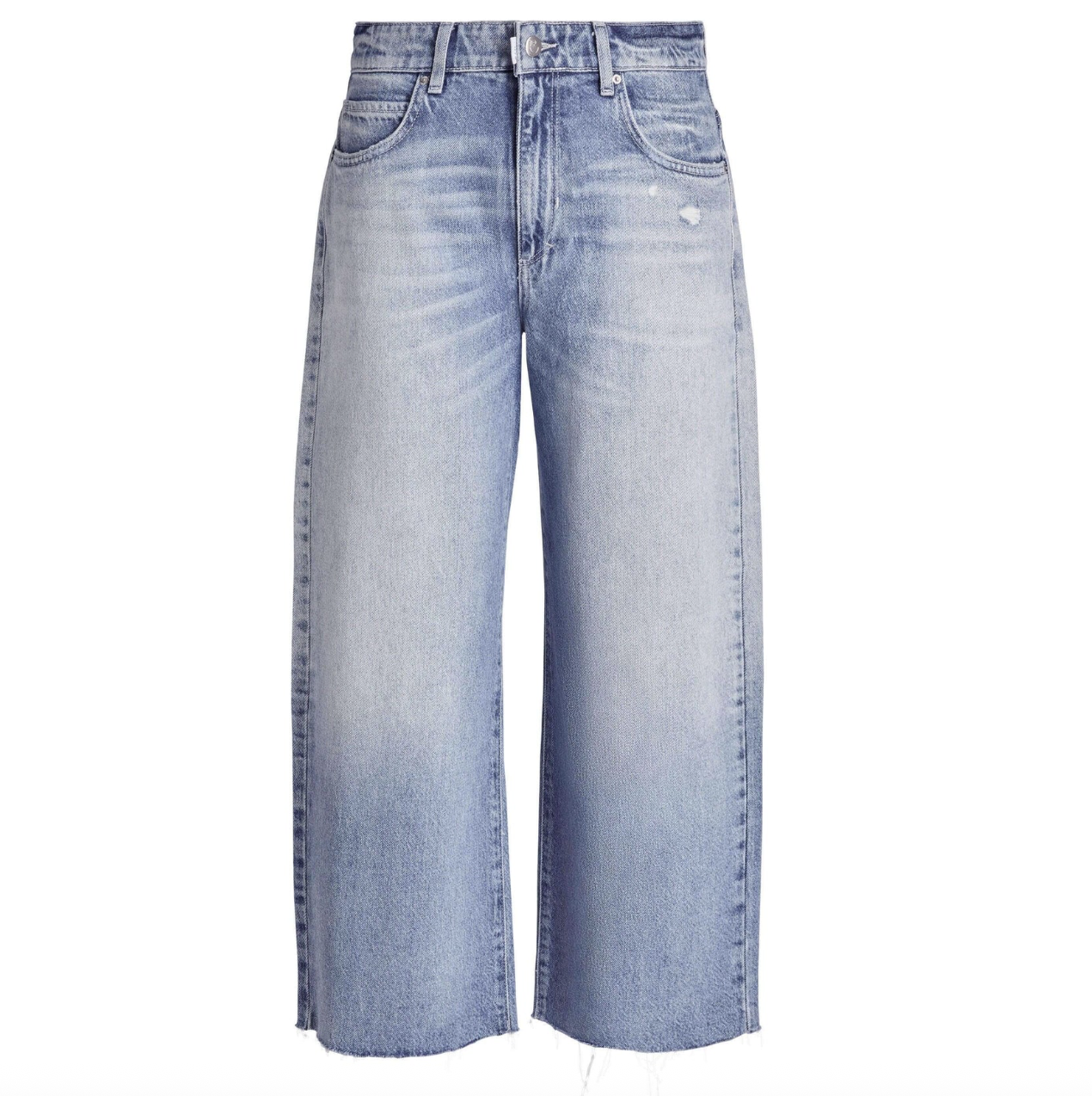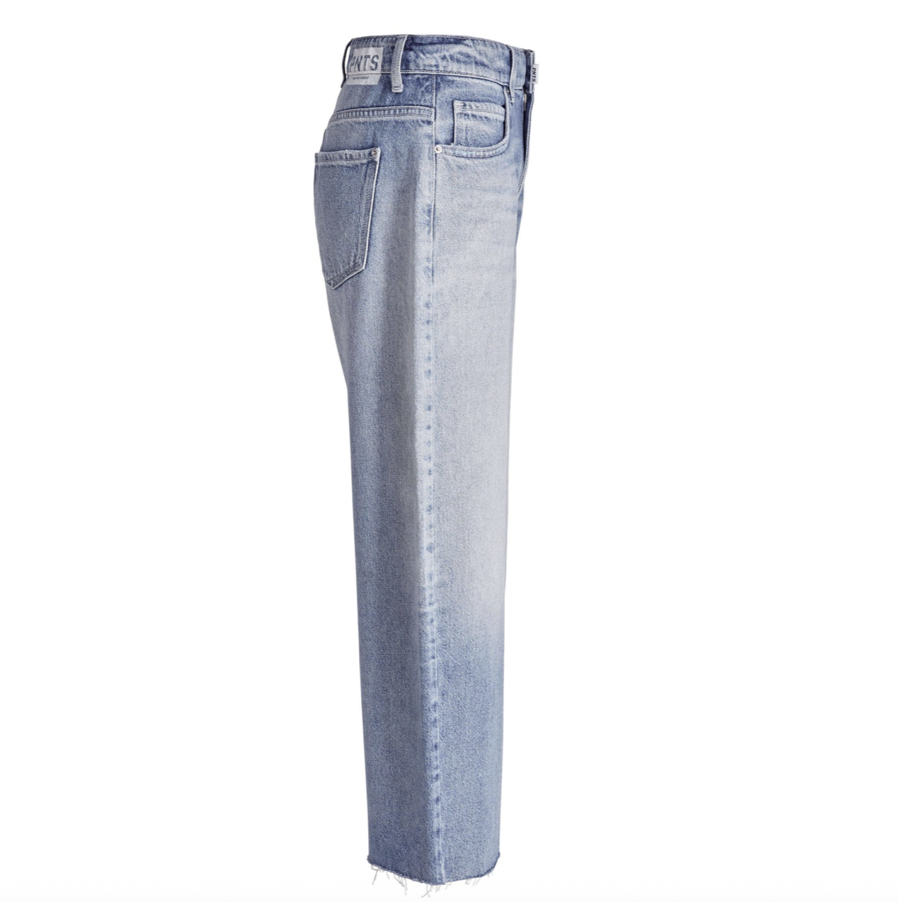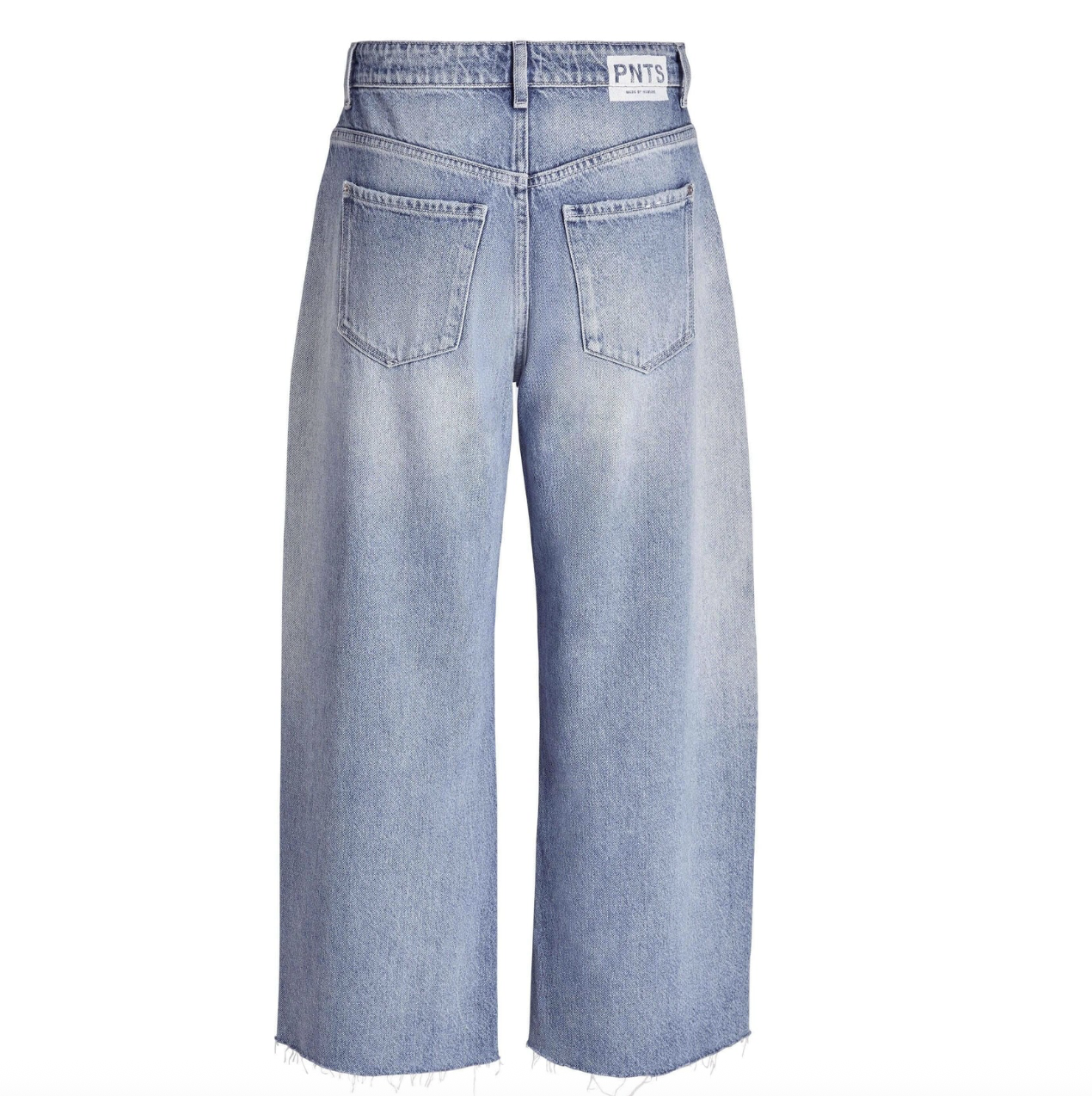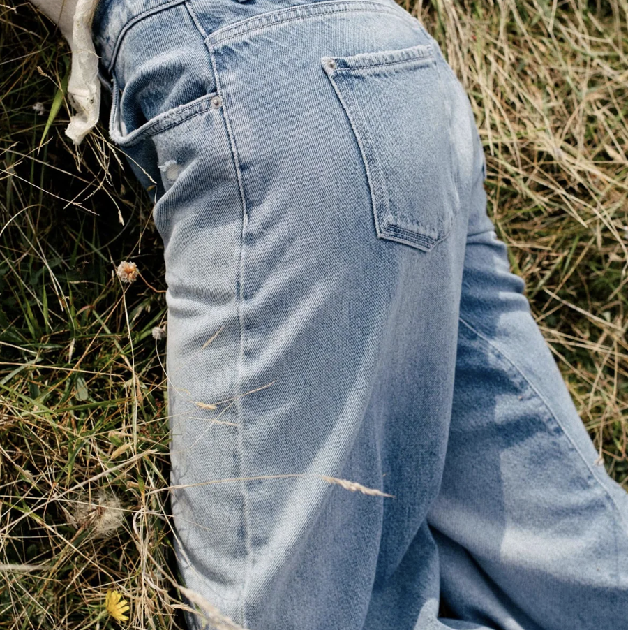 Die Denim 35_THE MINI L kommt in authentischer Rigid Light vintage Denim Qualität. Sie ist in heller, blauer Waschung mit helleren used Effekten und eingearbeiteten Buffis erhältlich. Der Rumpf ist sehr locker geschnitten mit weiterem Bein und höherer lockerer Leibhöhe. Sie hat eine ankle length und der Saum ist geschnitten, sodass er beim Waschen weiter ausfranst.