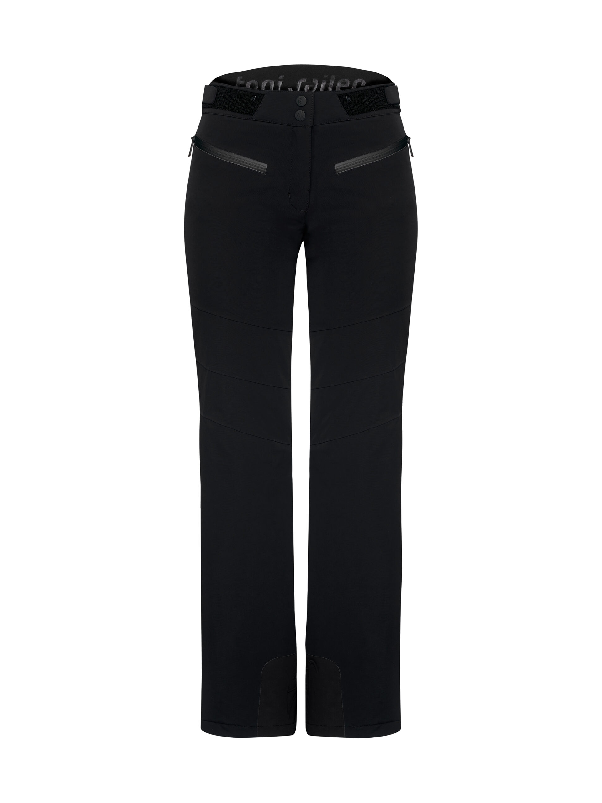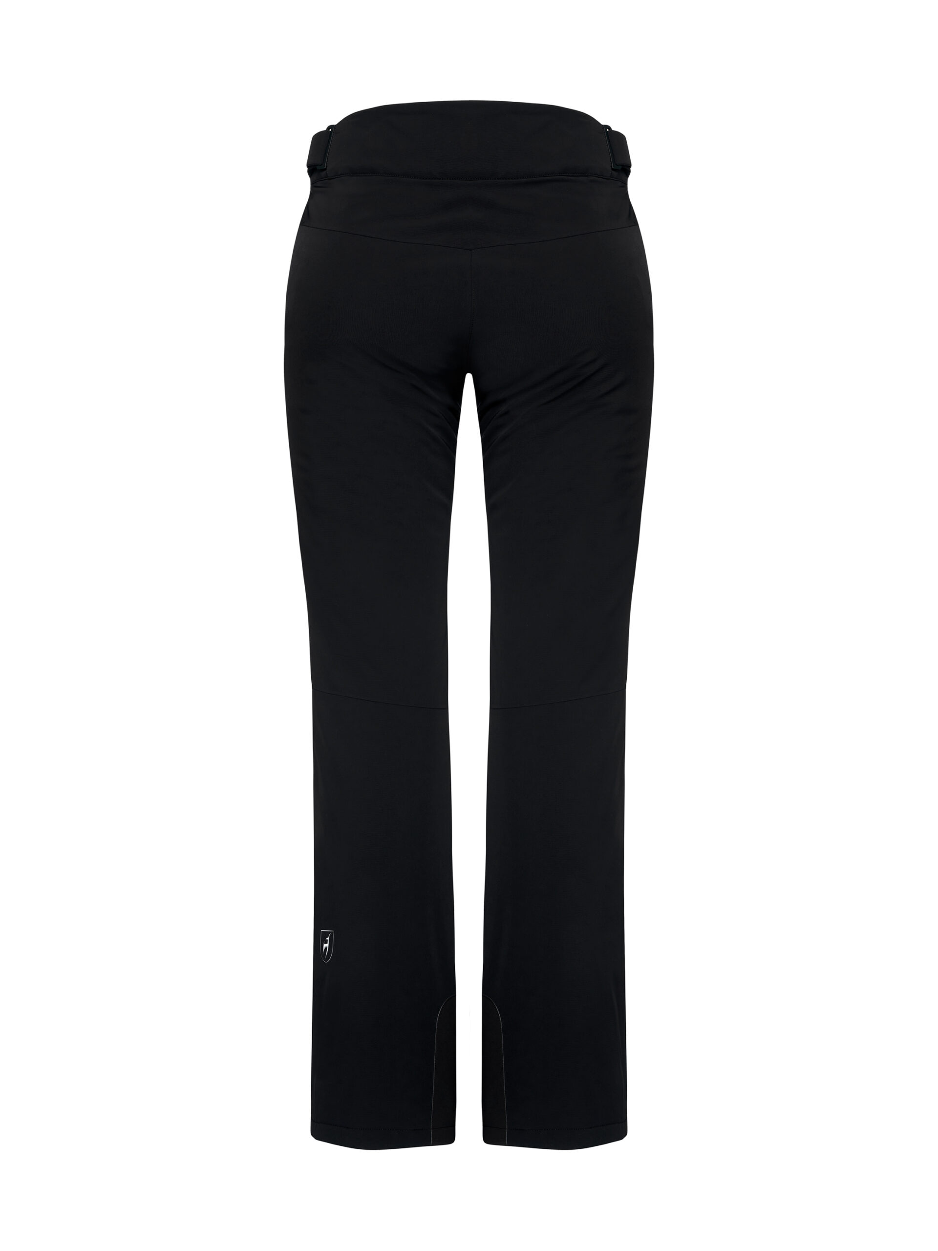 Die technische und komplett wasserdichte Damen Skihose AMIS beeindruckt mit perfekter Passform und maximaler Bewegungsfreiheit. Der japanische Premium 4-way Stretch dehnt sich mühelos in alle Richtungen, ebenso wie die PU-Membran, die zusätzlichen Schutz vor Feuchtigkeit bietet. Der höher geschnittene Bund im Rückenbereich wärmt optimal die Nieren, während die YKK® AquaGuard®-Reißverschlüsse die beiden Taschen zuverlässig gegen Wasser abdichten. Feine Details der Skihose umfassen das geformte Toni Sailer Gams Logo am Kantenschutz.