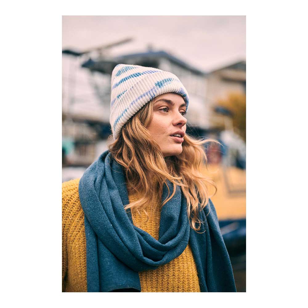 Die Breezes Beanie ist eine Baumwollmütze mit Rippstrick und Umschlag. Jede Mütze ist aufgrund der Tie-Dye-Technik einzigartig. Daher kann die Mütze von der Produktabbildung abweichen.