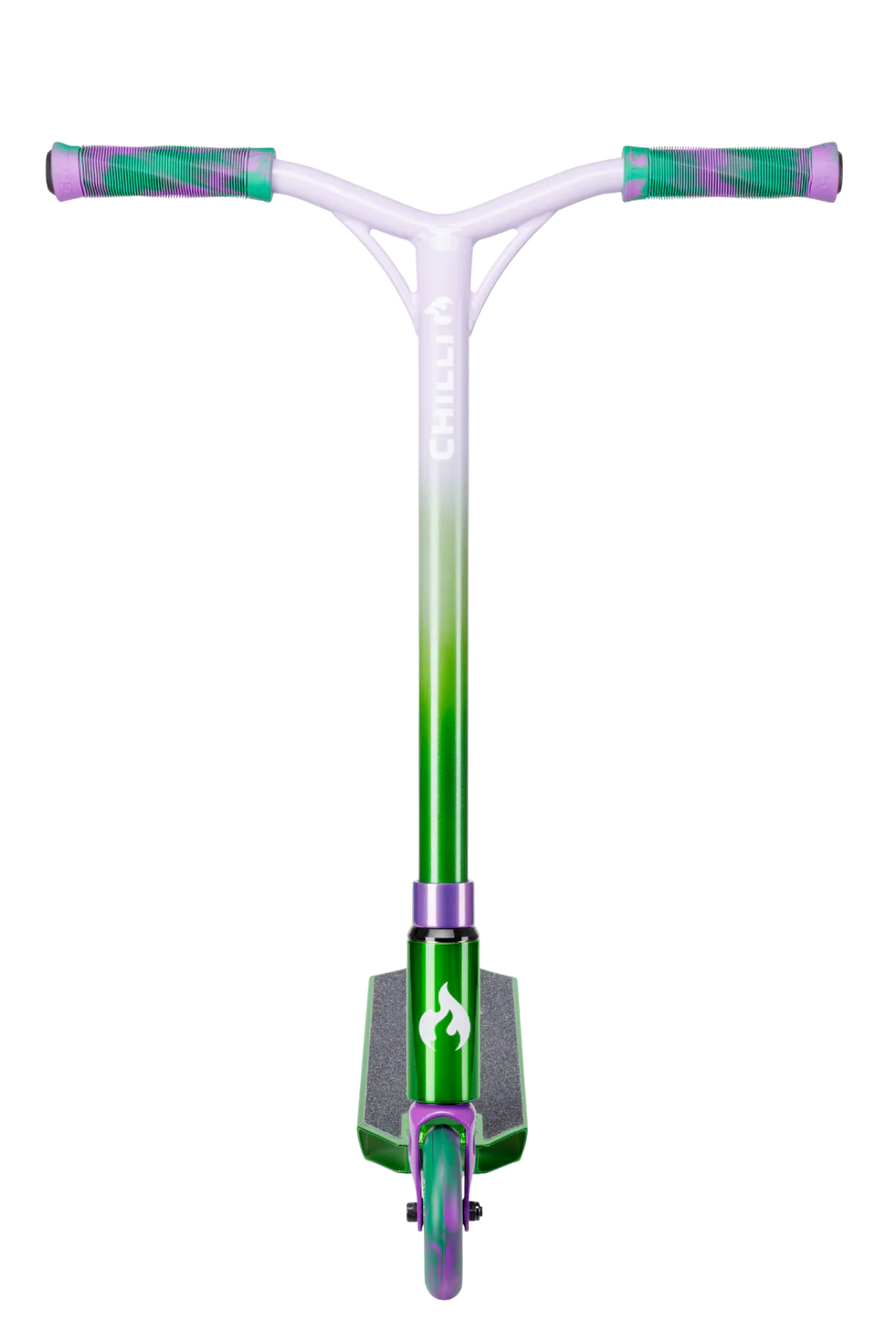 Der Chilli Pro Scooter Jumpstart ist deine auffällige Eintrittskarte in die Welt des Stunt Scooter Fahrens. Das auffällige Finish in leuchtenden Komplementärfarben sorgt dafür, dass alle Blicke auf dich gerichtet sind – egal ob du auf der Straße startest oder in den Park jumpst.