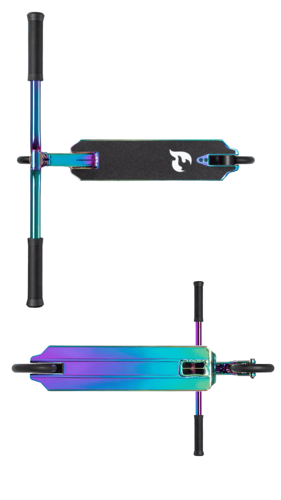 Zudem ist der Scooter mit einer robusten T-Bar aus Chrom-Molybdän Stahl, einer schmalen Aluminium Fork und einem Pro Spider HIC Kompressionssystem ausgestattet.
