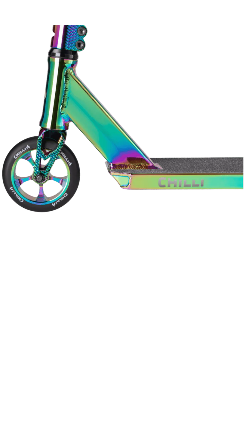 Hinten wurde es mit einer Einlagefüllung verstärkt und bietet ausserdem die Möglichkeit originale Chilli Pegs zu montieren. Die 120mm Aluminium Core Wheels sorgen für optimalen Speed.