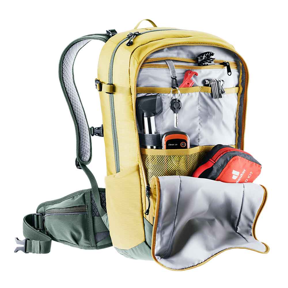 Vortasche mit großem Organisationsteil und RV-Netztasche für Schlauch, Werkzeug und Pumpenhalterung