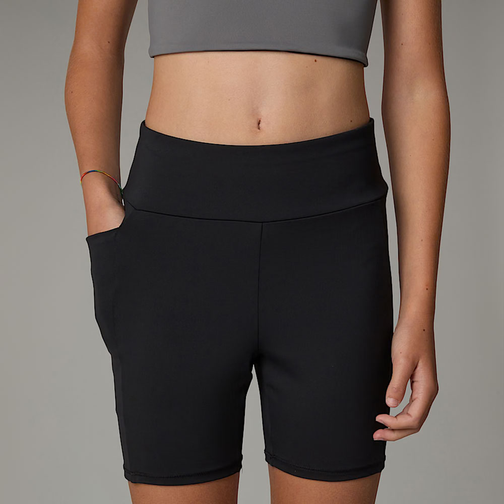 Die Never Stop Bike Shorts ist für aktiven Lifestyle konzipiert. Die schnell trocknende FlashDry™-Technologie und der großzügige Stretch-Anteil sorgen dafür, dass junge Entdeckerinnen auf all ihren Abenteuern kühl, bequem und trocken bleiben. Der breite Bund sorgt für Flexibilität, während die teilweise recycelten Materialien die Natur schonen.