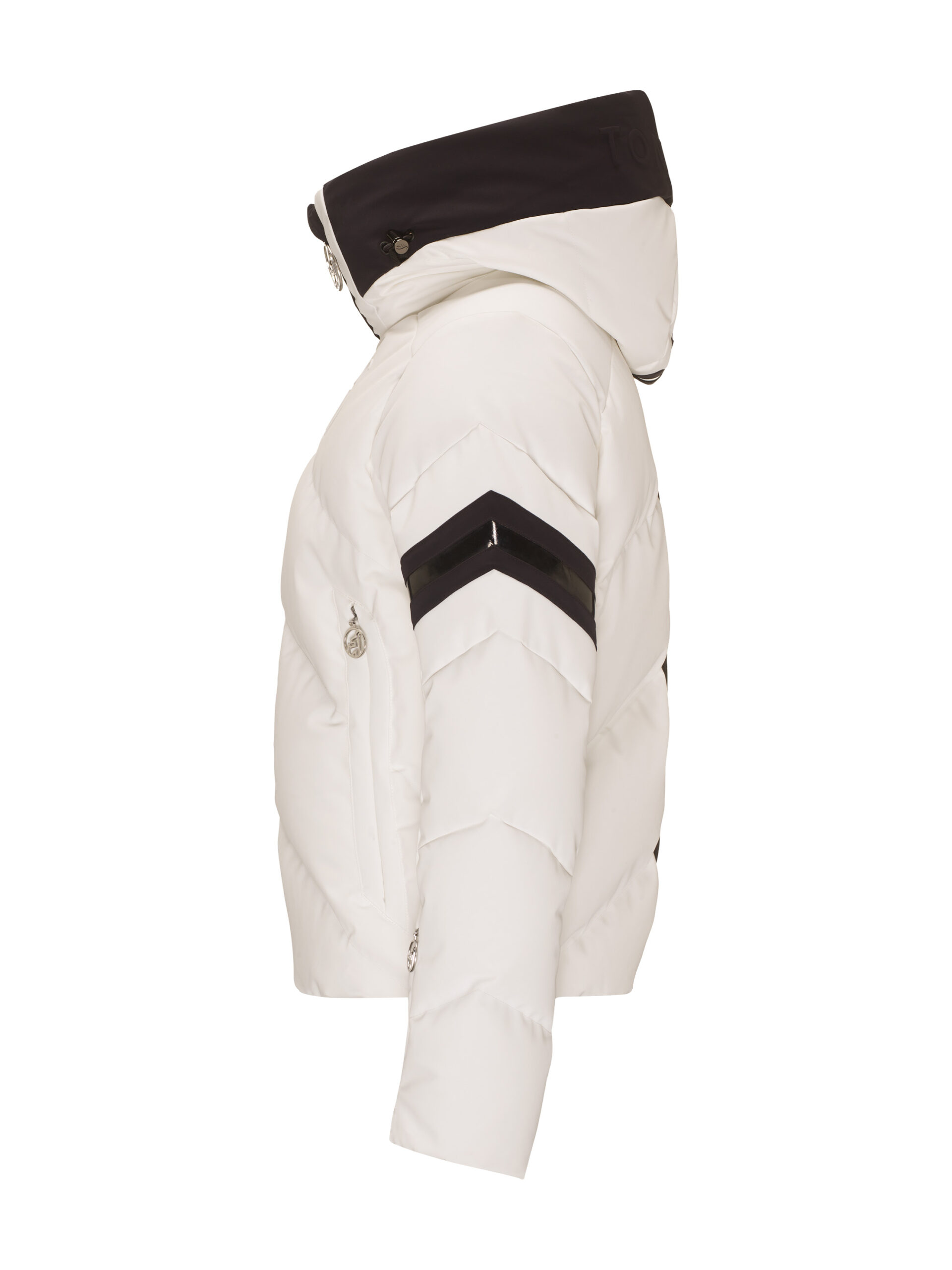Die Damen Skijacke HELENA STRETCH bietet Ihnen eine neue Toni Sailer Komfort-Passform mit einer modernen Silhouette! 100 % zertifizierte Daunen mit einer Bauschkraft von 750 cuin geben Ihnen die Wärme, die Sie an frostigen Wintertagen brauchen – auf der Piste und in der Stadt. Werfen Sie einen Blick auf die neuen glänzend schwarzen Details und die 3D-geprägten Logos auf der Brust und der Kapuze!