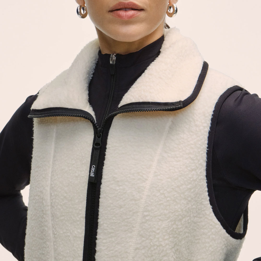 Superweiche Fleeceweste, die allein oder als Unterlage getragen werden kann – Ihr Lieblingsteil für jeden Tag. Durchgehender Reißverschluss, Fronttaschen mit Reißverschluss und hoher Kragen. Hergestellt aus 100 % recyceltem Material. Diese Fleeceweste ist Teil der Urban Outdoor-Kollektion von Casall.