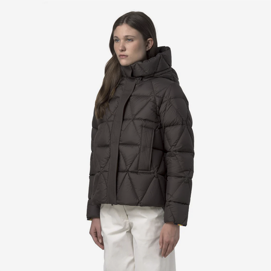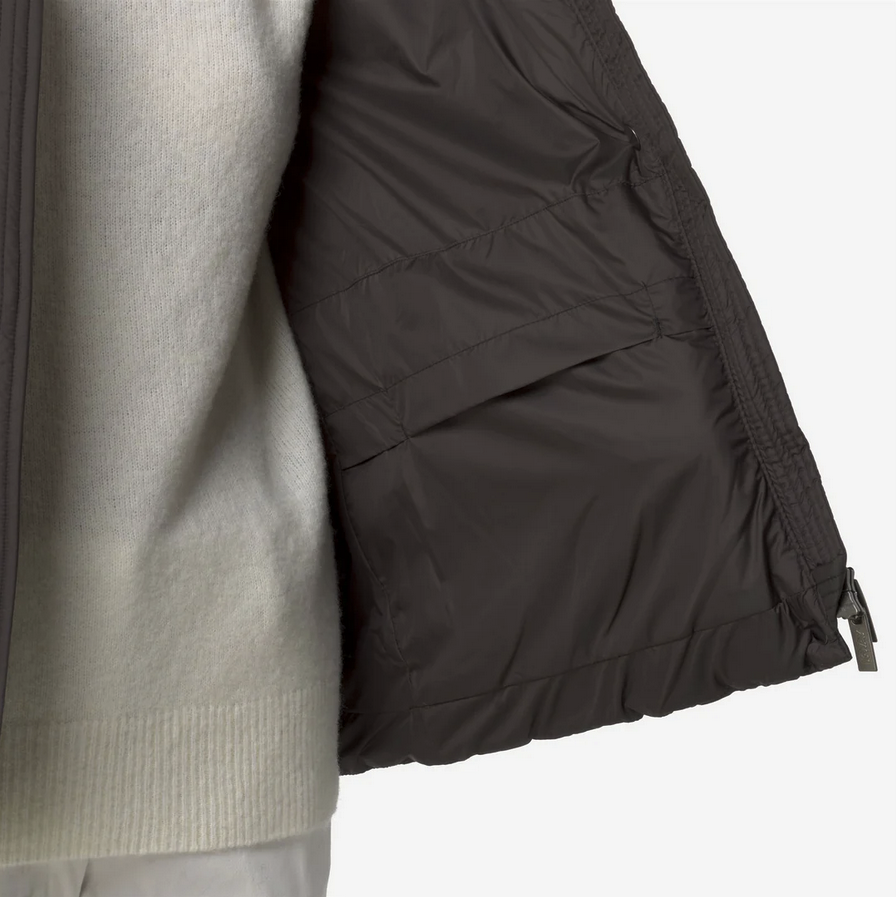 Lethille ist eine kurze Pufferjacke für Damen im City-Look, die für kältere Temperaturen entwickelt wurde. Sie besteht aus leichtem, gestepptem, wasserabweisendem und winddichtem Material und ist mit natürlichen Molina-Daunen gefüllt. Sie bietet hervorragende Wärme bei minimalem Volumen. Sie verfügt über eine umhüllende Kapuze und einen gesteppten Klappenverschluss, der das Design der Fronttaschen aufgreift.