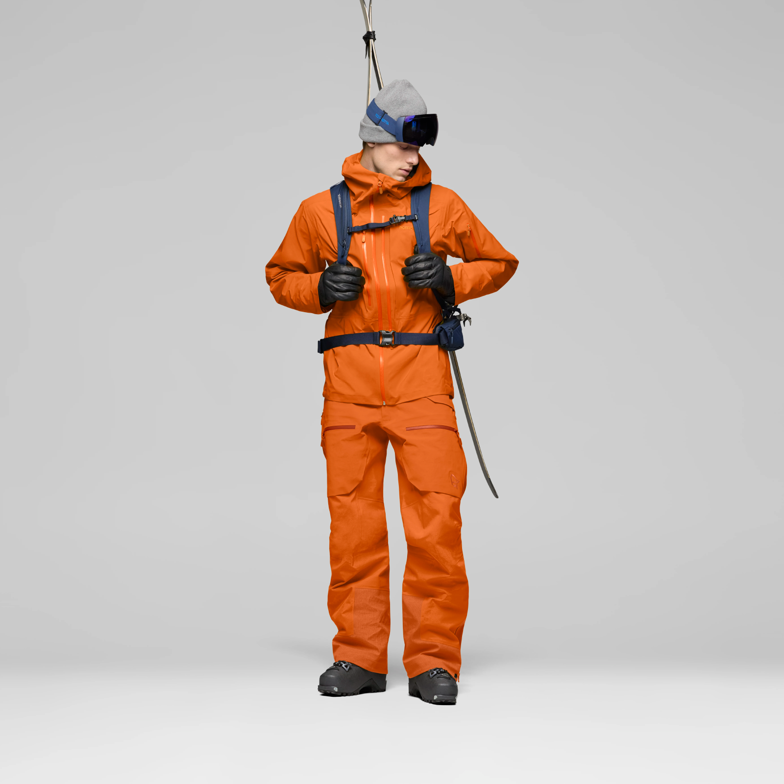 Zu den wichtigsten Merkmalen gehören eine schützende Sturmkapuze mit Einhandverstellung, ein Zweiwege-Reißverschluss unter den Armen, Napoleon-Brusttaschen, eine Stretch-Innentasche mit Reißverschluss und eine Dump-Tasche aus Stretch-Mesh, Belüftung auf der Vorderseite, eine Keycard-Tasche am Überarm, asymmetrische Ärmelbündchen mit Klettverschluss, integrierte und verbesserte Handgamaschen, ein verstellbarer unterer Saum und ein abzippbarer Schneefang mit Gummizug und Druckknopfverschluss.
