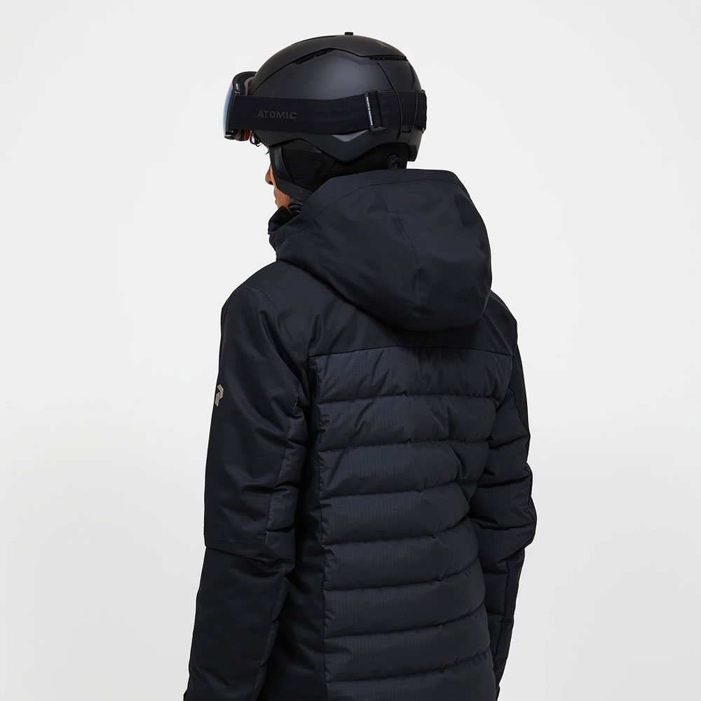 Perfekt für lange Tage auf der Piste: In dieser Skijacke mit normaler Passform und Body-Mapping-Konstruktion machst du immer eine gute Figur und bleibst dank der Füllung aus leichten, warmen Daunen und synthetischen Funktionsfasern schön warm. Das strapazierfähige Material ist wasserdicht und atmungsaktiv, und die Hauptnähte sind für mehr Komfort und Schutz abgedichtet. Clevere Details wie ein RECCO®-Rettungsreflektor, eine Skipasstasche, elastische Pulswärmer, ein Schneefang und mehrere Taschen für wichtige Kleinigkeiten werden dich begeistern. An Taille, Saum und Ärmeln kannst du die Passform individuell verstellen.