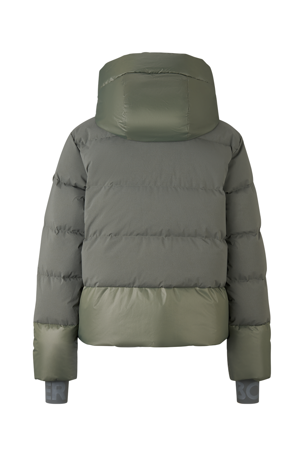 Die wärmende Wattierung aus Gänsedaunen und -federn sowie die wasser- und winddichte Qualität mit fließenden Nylon-Partien zeichnen die Ski-Daunenjacke Maja aus – ergänzt durch den abnehmbaren Teddykragen. Funktionale Details wie die justierbare Kapuze und der inwendige Schneefang runden das Piece ab.
