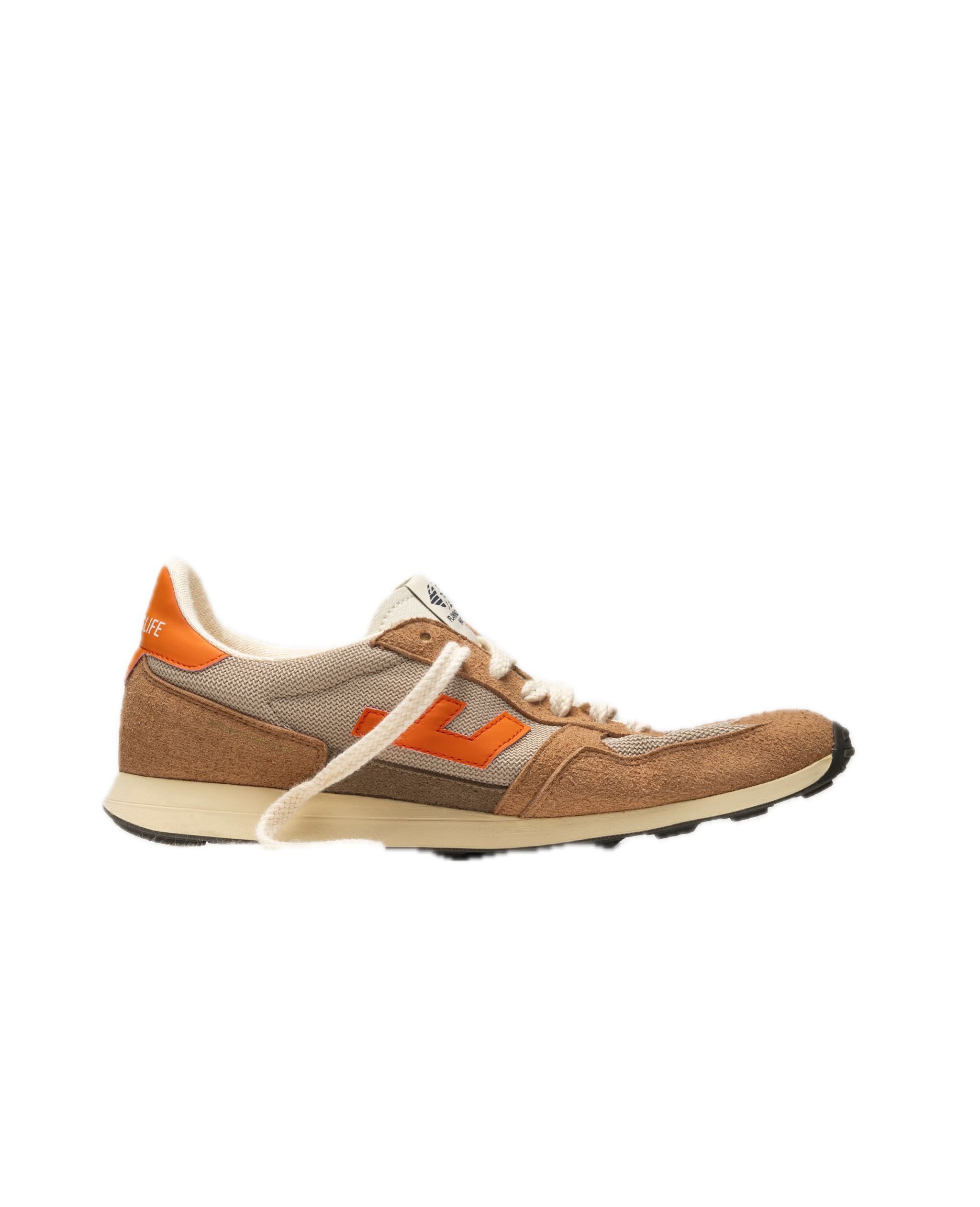 Das Obermaterial besteht zu 70 % aus Maisabfällen und zu 30 % aus Baumwolle. Details am Obermaterial sind aus 100 % recyceltem Polyester aus Altflaschen gefertigt.