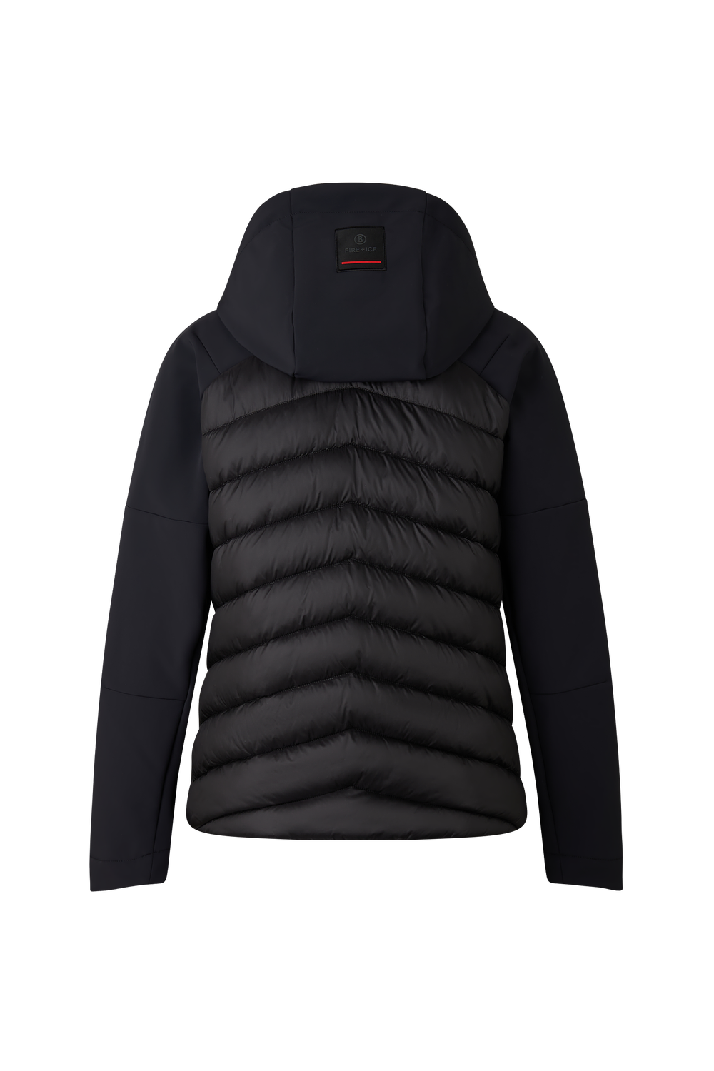 Im Design-Mix aus abgesteppten Nylon- sowie Softshell-Partien erweist sich die Hybrid-Jacke Marian als modernes Update des Looks, ergänzt durch die justierbare Kapuze und den Zwei-Wege-Zipper. Für Wärme sorgt die Wattierung aus recycelten Tech-Fasern. Dezente Signature-Details verleihen ein labeltypisches Finish.