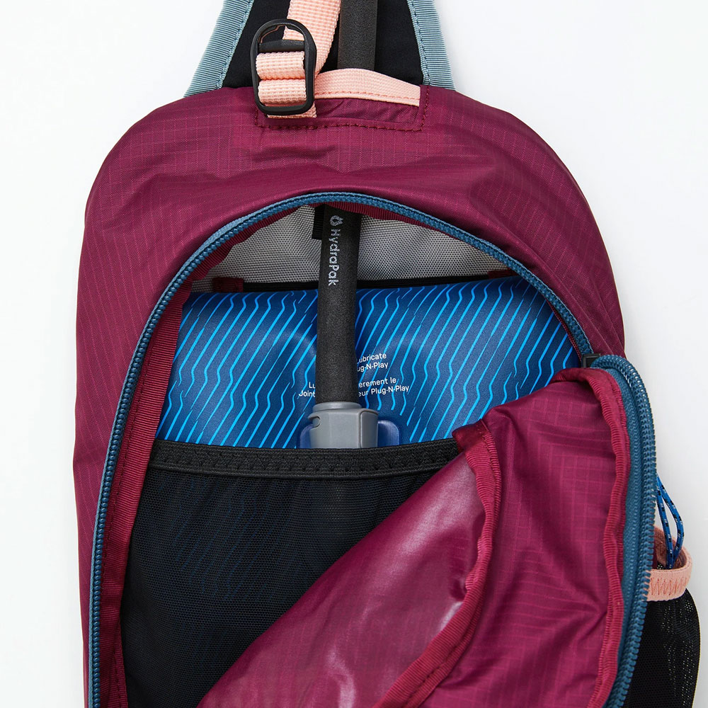 Schluss mit dem störenden Auf- und Abhüpfen, während du dich bewegst: Diese strapazierfähige Slingbag mit 3-Punkt-Riemen lässt sich ganz eng am Körper tragen. Mit Tasche und Halteschlaufe für deine Wasserflasche, einem Fach für deine Trinkblase, einer Brusttasche am Riemen und mehreren Innentaschen. Aus wasserabweisendem Material.
