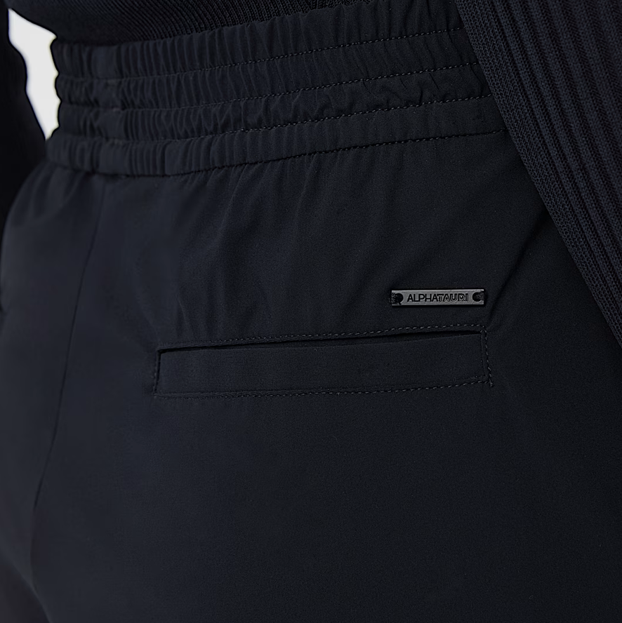 Zwei seitliche Einschubtaschen unterstreichen den entspannten Charakter, während die angedeuteten Leistentaschen auf der Rückseite für eine elegante Optik sorgen. Gebondete Säume verleihen dem Design eine besonders hochwertige, cleane Verarbeitung.