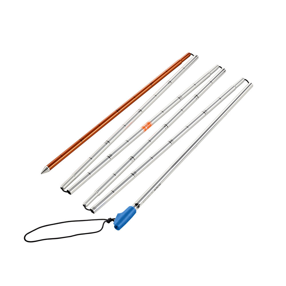 Die Einsteiger-Sonde mit Quick-Lock-Spannsystem: Die ALU 240 ist reduziert auf das Wesentliche. Das Quick-Lock-Spannsystem ermöglicht einfaches und schnelles Spannen. So ist sie sekundenschnell einsatzbereit und genauso schnell wieder entspannt und zusammengelegt. An der optimierten Stellschraube kann die Spannung durch einfaches Drehen nachjustiert werden. Ein besseres Eindringen verspricht die voluminöse Sondenspitze, die einen deutlich größeren Durchmesser als die Sondenelemente hat. Das geringe Gewicht wird durch die Verwendung von Aluminium mit einem Durchmesser von 11 mm erreicht. Wie all unsere Sonden verfügt auch die ALU 240 über eine gut lesbare Tiefenmarkierung, eine deutliche 1 m – Markierung und das in neonorange gehaltene unterste Segment, um die Schaufelstrategie optimal anpassen zu können.
