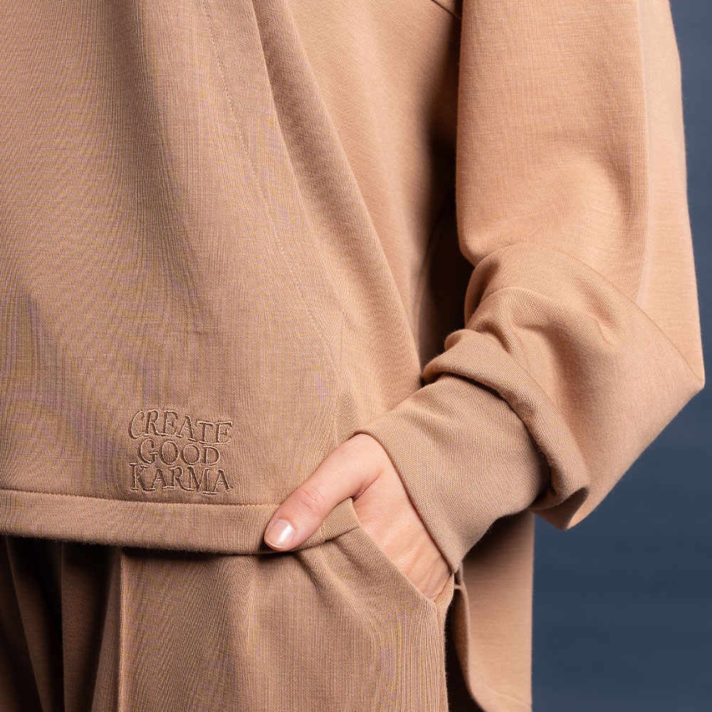 Oversized Rundhalsswetater mit kleiner Stickerei vorne.