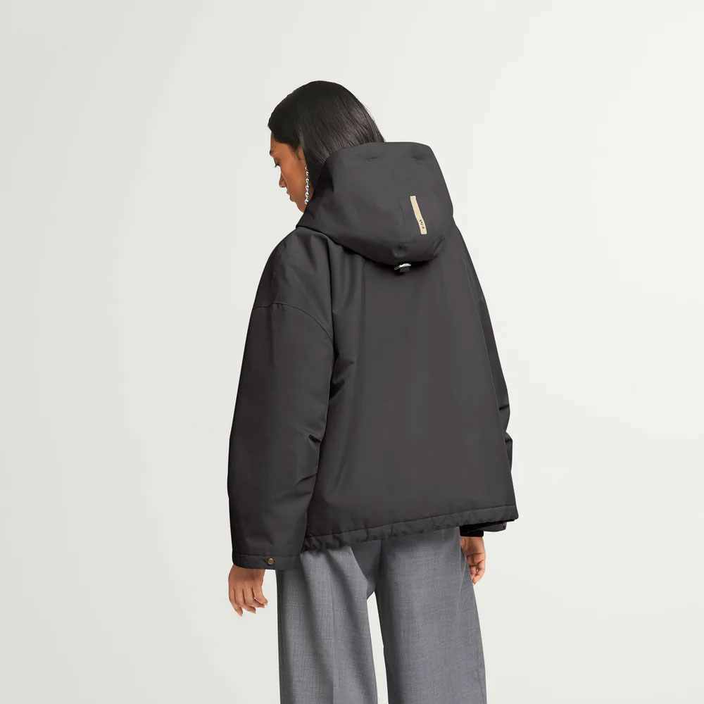 Die hüftlange Jacke ROSIE spielt mit Form und Funktion – und setzt auf individuelle Wandelbarkeit. Dank verstellbarem Saum lässt sie sich entweder in klarer Kastenform oder mit femininer Volumenraffung tragen. Zwei Looks, ein Piece – für maximale Stylingfreiheit. Der edel schimmernde High-Tech-Twill mit weichem Griff verleiht ROSIE eine subtile Eleganz, die in jeder Kombination überzeugt. Ob nonchalant zu Denim oder sophisticated zur Wide-Leg-Hose: ROSIE ist der perfekte Allrounder für einen stilvollen Auftritt – von morgens bis abends. Eine Jacke, die Ihre Garderobe spielend erweitert – modern, vielseitig, mühelos chic