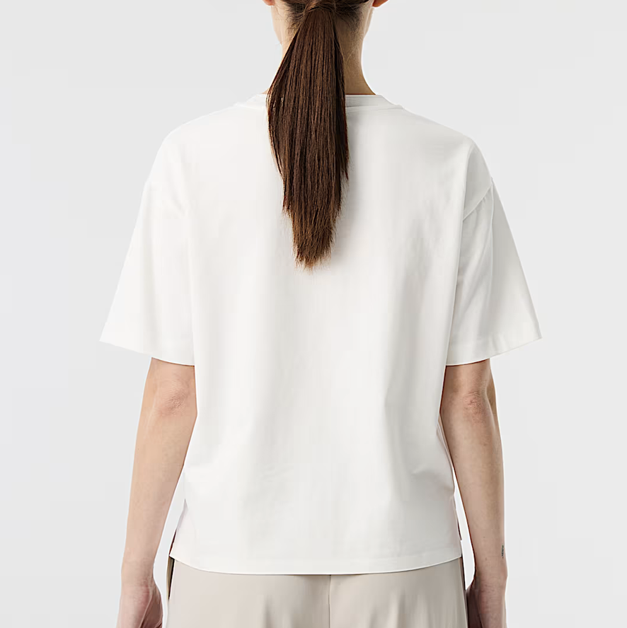Seitliche Schlitze unterstreichen den soften Fall und bieten zusätzliche Bewegungsfreiheit. Der dezente Logo-Print auf der Rückseite setzt einen stilvollen Akzent.