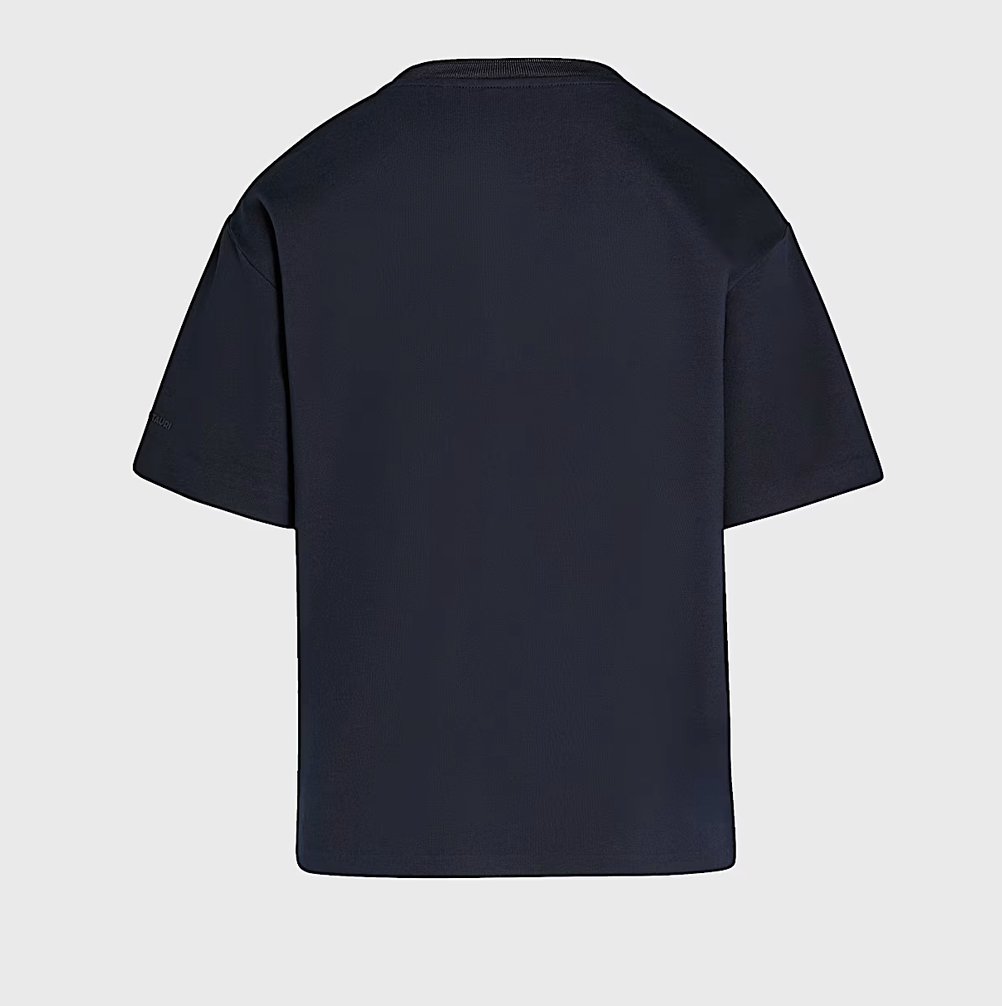 Dieses Shirt steht für lässige Eleganz und zeitlosen Minimalismus. Die lockere Passform mit überschnittenen Schultern sorgt für eine entspannte Silhouette, während der gerippte Rundhalsausschnitt dem Design eine klare, moderne Linie verleiht.