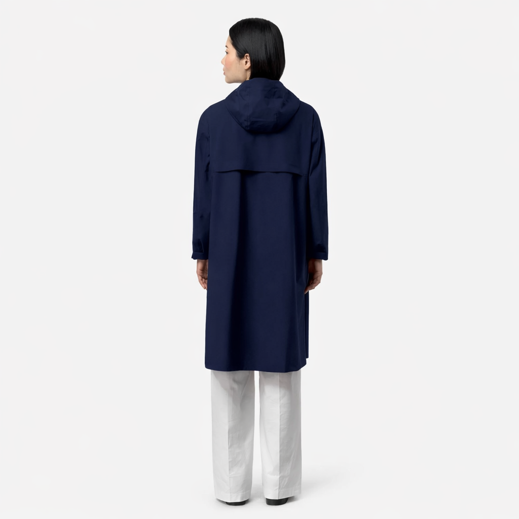 Tigrit ist ein langer, oversized Damenmantel, der sich ideal für die Übergangszeit eignet. Er besteht aus zwei Lagen: einem wasserdichten, winddichten und atmungsaktiven Stretch-Polyester-Außenmaterial, kombiniert mit einer isolierenden Membran und verschweißten Nähten. Die verstellbare Kapuze und der verdeckte Reißverschluss verleihen ihm einen eleganten, urbanen Look.