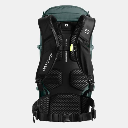 Mit seinem COMFORT-CONTACT BACK SYSTEM bietet der TRAVERSE 28 S ausbalancierten Tragekomfort: Die Pads sorgen für eine permanente Luftzirkulation, während die breiten, ergonomischen Schulterträger und der breite Hüftgurt die Last ausgewogen verteilen. Ein umlaufender Reißverschluss bietet schnell und einfach Zugriff auf das Hauptfach des TRAVERSE 28 S, während zusätzliche Ausrüstungsgegenstände im Deckelfach, einer elastischen Fronttasche, dem Innenfach und einer Hüfttasche verstaut werden können. Ein abnehmbares Helmnetz, das am Deckel befestigt werden kann, Kompressionsriemen, Stockhalterungen, A-Skifix und Trinkflaschenhalterungen runden die bergsportspezifischen Features ab.