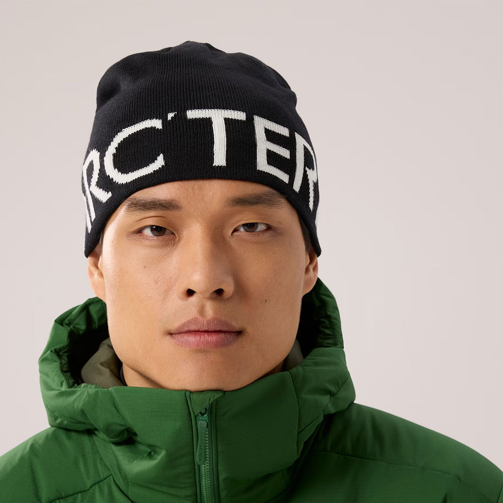 Eng anliegende, wendbare Mütze mit Arc’teryx Schriftzug auf der einen Seite und unifarben auf der anderen.