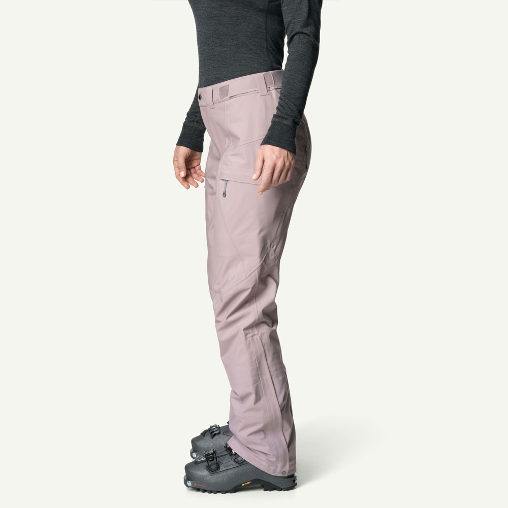 Die Women’s Ride Pants sind für alle Formen von Alpinski oder Bergsport-Abenteuern konzipiert. Die seitlichen Belüftungsschlitze sind mit Gurtzeug kompatibel und die Seitentaschen haben interne Taschen, in denen du ein Sende- und Empfangsgerät oder Wertsachen verstauen kannst. Am Beinende befindet sich eine Schneegamasche, der Zwickel sorgt dafür, dass jede Art Stiefel gut sitzt und ein versteckter Metallhaken ermöglicht die Befestigung der Schuhe. Die Innenseite der Hosenbeine ist mit Schoeller®-Einsätzen verstärkt, die vor Schnitten durch scharfe Kanten schützen.