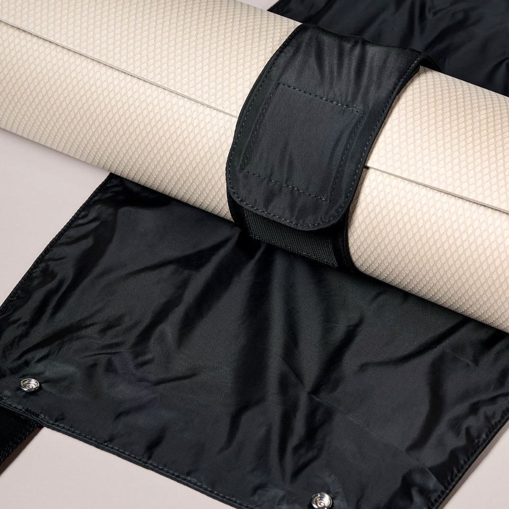 So nimmst du deine Yogamatte ganz elegant mit zum Kurs! Leg deine zusammengerollte Matte in die Tragetasche, befestige sie mit dem Klettverschluss, schließe die Tasche, hänge sie dir über die Schulter und los geht‘s. Das einzigartige Design verleiht deiner Yoga-Routine eine ganz neue Leichtigkeit. Die Außentasche mit Reißverschluss ermöglicht unterwegs schnellen Zugriff auf alles Wichtige. Hergestellt aus recycelten Materialien.